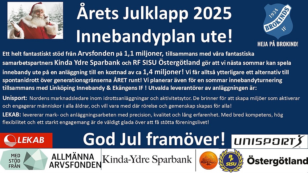Ny innebandyplan ute för 1,4 miljoner till Brokind är årets julklapp 2025!