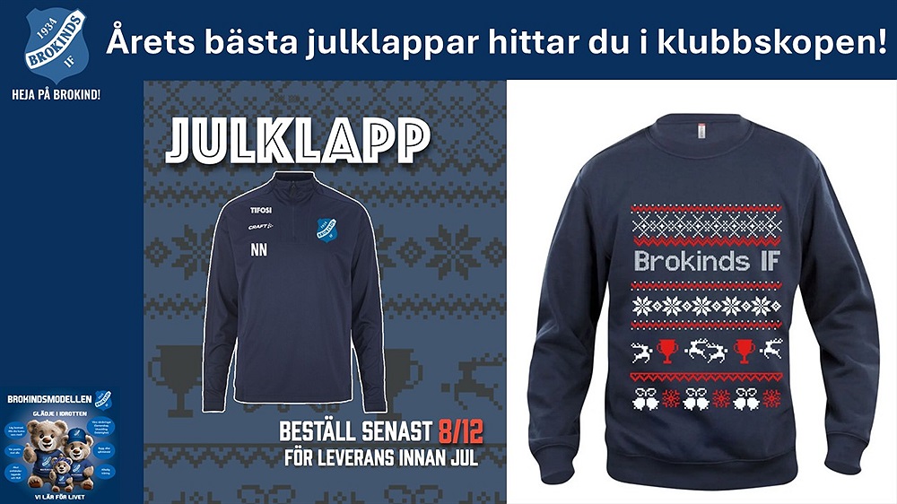 Om Ni vill köpa några andra fantastiska julklappar går Ni givetvis in i klubbshopen och beställer innan den 8/12 enligt förra veckas nyhet: Årets bästa julklappar beställer du i klubbshopen innan den 8/12! / Brokinds IF