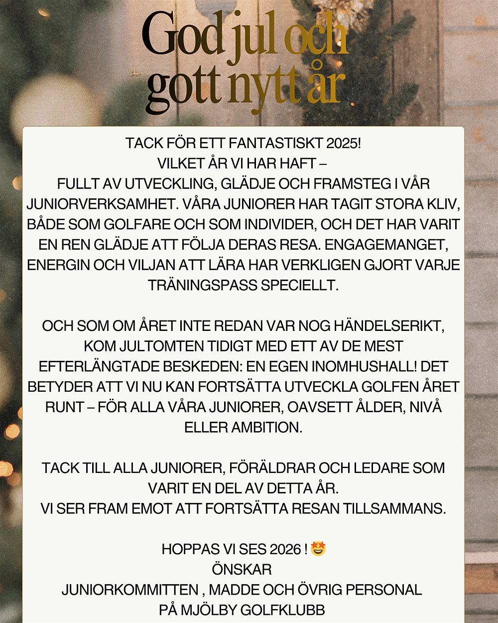 Vi på Mjölby Golfklubb har som målsättning att erbjuda träning och aktivitet för juniorer i alla åldrar och utifrån olika ambitioner och kunskapsnivåer.
