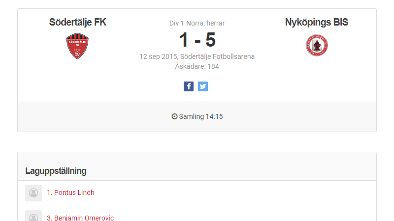 Besökare kan enkelt se senaste resultat och tidpunkt för nästa match.
