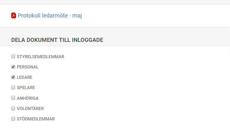 Registrera närvaro för hela laget med ett enda klick. De som svarat ja på kallelsen är förvalda. Fungerar både på hemsida och i mobilappen. Nu slipper ni ha lagpärmen med ut på träningsplanen.