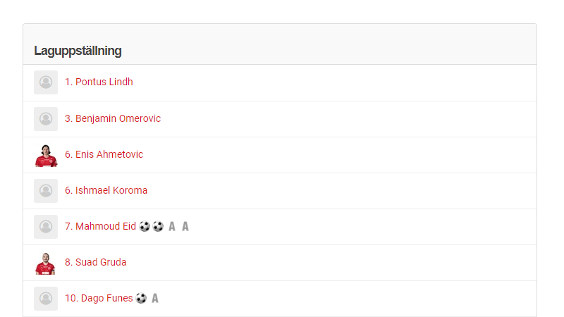 Under Statistik kan du enkelt se vem som leder skytteligan, vem som gör flest assist och vem är lagets buse. Sortera på respektive kolumn för snabb överblick.