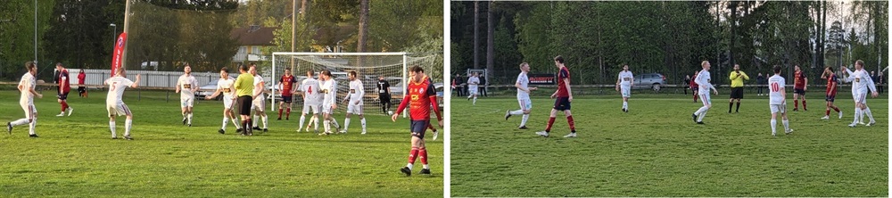 Redan från start tar vi ett litet men klart initiativ i matchen. Halvtimmen in i matchen får vi en hörna som slås ganska långt, nickas in framför mål och efter ett par studsar hamnar den framför huvudet på Jocke S som nickar in ettan. Årets nyförvärvs första mål i Hindentröjan, grattis! 0-1 står sig halvleken ut, fullt rättvist resultat så långt.