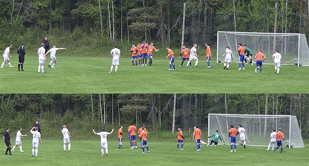 Med tanke på de två senaste andrahalvlekarna är det med viss oro vi ser fram emot denna men det visar sig helt obefogat. Lite drygt fem minuter in spelar vi till oss en hörna, Oskar kommer upp perfekt och nicken sitter fint i nätet. Stärkta av ledningen pressar vi högt och blir tilldömda en frispark strax utanför straffområdet. Oskar stegar fram och trycker in sitt andra mål på två minuter. Resten av halvleken är väl spelmässigt ganska jämn men vårt försvar är tillbaks till sitt vanliga stabila och Erik B som gästspelar i målet i Jackes frånvaro tar hand om det som kommer förbi. Till slut en säker 2-0 seger och den lite sämre trenden från två senaste är bruten.