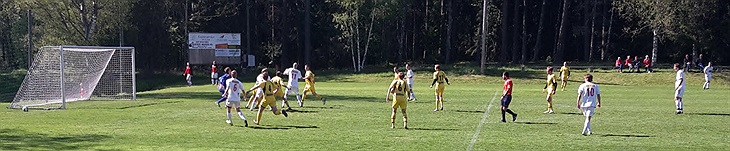 Första öppna målchansen är dock våran då Robin P får ett friläge ungefär kvarten in i matchen, målvakten är dock snabbt ute och avvärjer och kanske avgörs matchen redan där. Fortsättningsvis ställningskrig med mycket spel på mitten men efter halvtimmen gör bortalaget 0-1 på ett friläge och det blir också halvtidsresultatet.