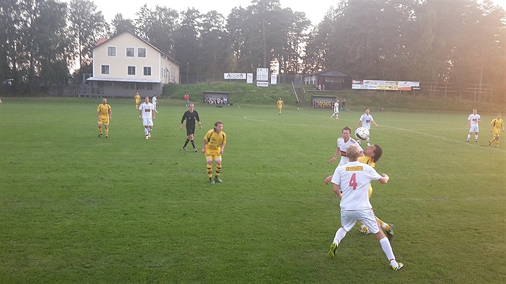 Måndagskväll i Bälinge och sommarvädret håller i sig. Hindens höstform likaså och vi får se en riktigt småtrevlig tillställning på IP. Hinden tar tag i taktpinnen från start och det dröjer inte mycket mer än tio minuter innan Robin E knästående kan nicka in en boll i mer eller mindre öppen kasse, upprinnelsen ett långt inlägg som Jocke "Zlatan-klackar" tillbaks in framför mål och då har Bälingeförsvaret tappat bort Eriksson i målområdet. Matchen jämnar ut sig även om det ser tryggt ut bakåt, Erik får mota några hörnor men inga andra större utmaningar. Mycket psykologiskt gör vi sedan 0-2 strax före paus. Jocke vinner boll i högermitt-läge och eftersom Bälinge är på väg uppåt, Robin P är snabb och Jockes pass skär som en kniv genom försvaret får Robin den vänstra offensiva fjärdedelen av planen helt för sig själv. Han avancerar och sätter distinkt dit tvåan.