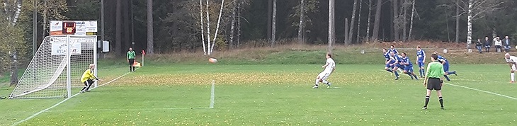 Andra halvlek blev mer underhållande, framför allt fick vi se lite mål. Efter 20 minuter lyckas Jocke forcera in ettan efter smärre kalabalik och nu känns det egentligen rätt lugnt. Hinden har större kunnande och det börjar synas nu. Men men, i åttionde minuten kvitterar Funbo och ännu värre blir det i minut 87 då de också tar ledningen. Dock tar vi oss in i straffområdet i anfallet efter, domarens pipa ljuder och han pekar på straffpunkten. Jocke stegar fram och sätter kvitteringen med akuratess. Trots att det bara återstår två minuter och matchen är mycket snäll hinner domaren dela ut ytterligare tre gula kort, varav ett renderar i rött för en Funbo spelare. Intressant fenomen vi sett i många matcher i år, avslutningen av matcherna står korten som spön i backen. I dagens snälla match delades exempelvis sju gula kort ut sista 20. Domarna som tappar fokus eller vad kan det bero på?