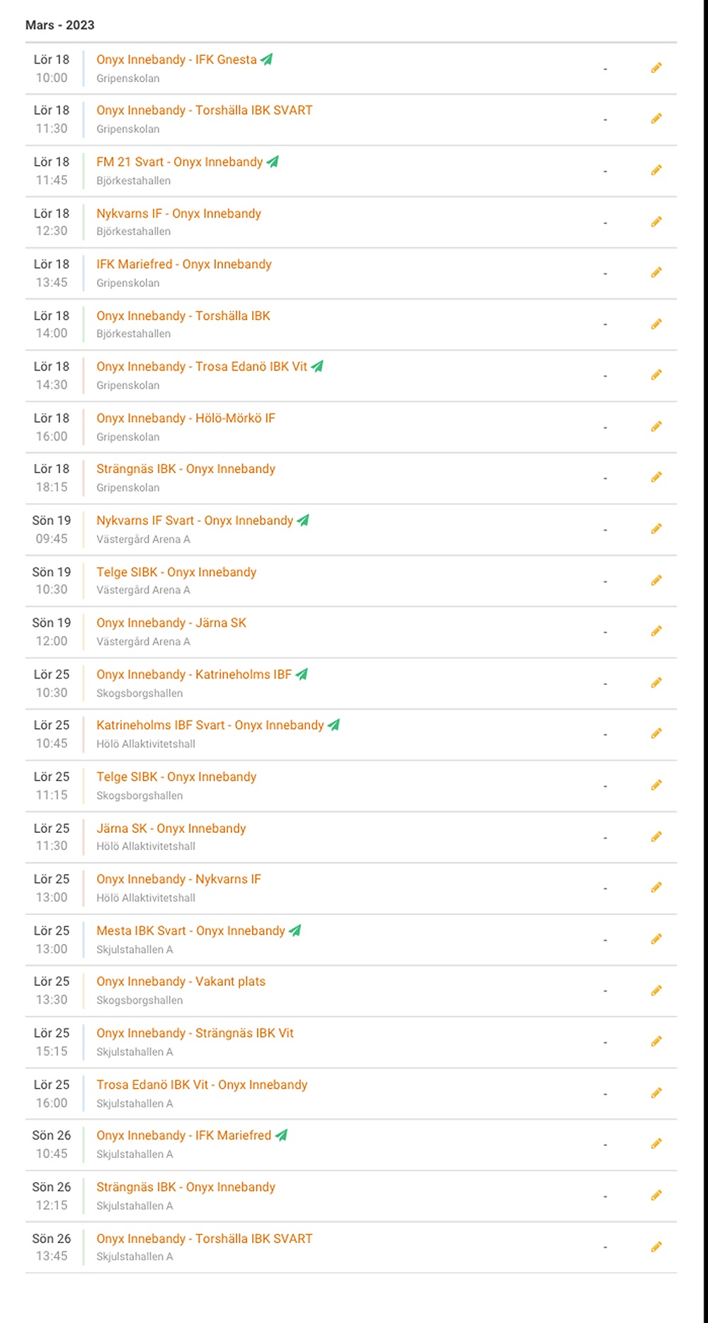 Hela truppens spelschema