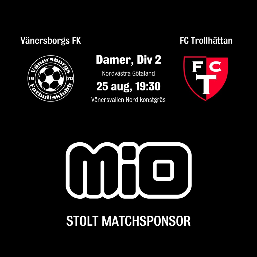 Matchen spelas på Vänersvallen Nord och matchstart är kl 19.30. Varmt välkomna!