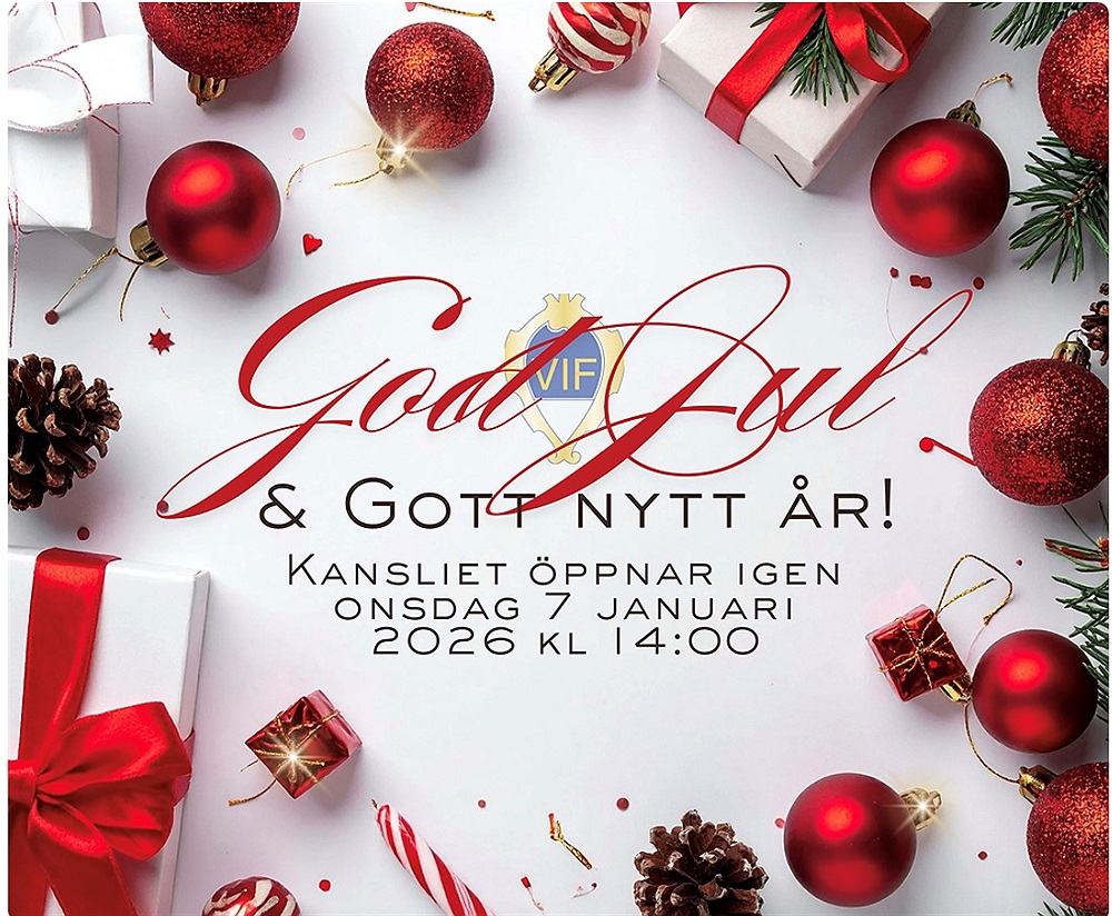 Ha en riktigt god jul och ett gott nytt år och tack för ett gott samarbete under 2025. Nu ser vi tillsammans fram emot ett roligt 2026, då VIF firar 120-årsjubileum!