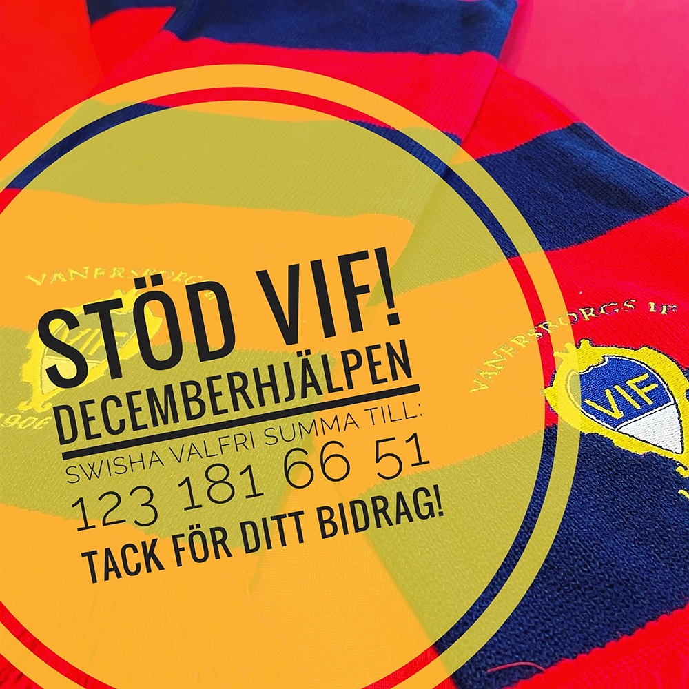 - Vi vet att VIF betyder mycket för väldigt många och att många faktiskt vill ge ett rent bidrag till verksamheten. Nu har alla chansen att göra det. Och även VIF behöver en extra julklapp i år, för att få en extra skjuts inför 2022, säger Fredrik.