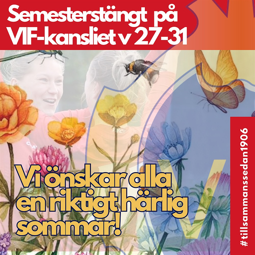 VIF:s kansli är obemannat vecka 27-31. Kansliansvariga Pernilla har semester med start måndag 1 juli och läser e-post sporadiskt under semesterperioden. Vid akuta ärenden, vänligen skicka sms: 072-288 05 52