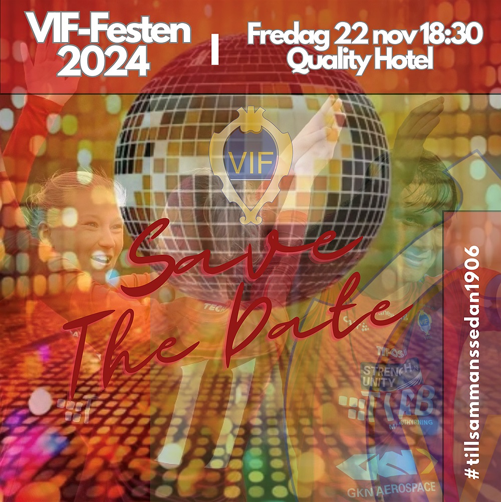Mycket återstår av säsongen, men redan nu sätter ni ett stort rödblått hjärta i kalendern fredag 22 november. För då samlas alla rödblåa dam- och herrspelare, ungdoms- och seniorledare, sektionsmedlemmar, stödmedlemmar, och alla respektive, såklart - för VIF-Festen 2024 på Quality Hotel.