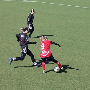 Det blev förlust mot Skoftebyn U på söndagsförmiddagen. Vi började matchen bäst och efter 8 minuter blir Emma Ljungman frispelad och sätter 1-0. Efter målet fortsätter vi att spela bra. Håller bollen inom laget och spelar vårt spel. I 26:e minuten skjuter SIF ett långskott som oturligt går i mål. Sista delen av halvleken tar SIF över matchen mer och mer. Vi faller in i deras spel och tappar vårt eget. Ställningen i halvlek är 1-1.