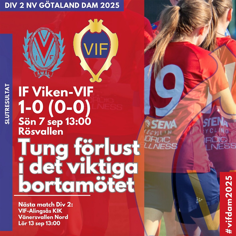 Det blev en mycket tung förlust med matchens enda mål när VIF gästade IF Viken på fina Rösvallen i Åmål denna soliga septembersöndag. VIF nådde inte riktigt upp till förra helgens höjder, men skapade ändå tillräckligt med chanser för att få med sig något i poängväg. Utdelningen i målprotokollet uteblev dock, och därmed också i poängprotokollet.
