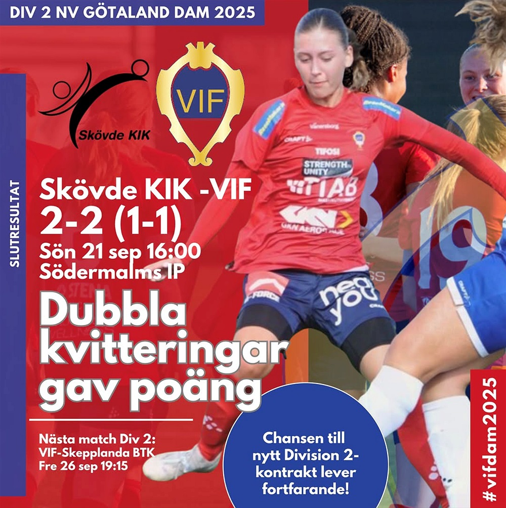 VIF Dam kom tillbaka från underläge två gånger om och fick med sig en värdefull poäng från bortamötet med Skövde KIK i Division 2-spelet på söndagen. Efter 2-2 lever möjligheten att klara nytt kontrakt av egen kraft i allra högsta grad.
