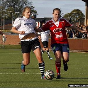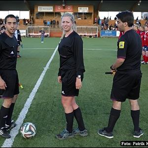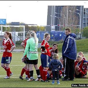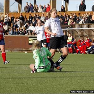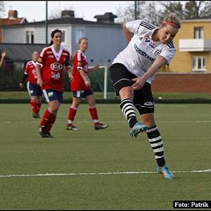 Folkfest och vackert väder. Dags för historiskt derby mot Vänersborgs FK. Två taggade lag som startar matchen. Där slutar det roliga för oss idag. I 38.e minuten när matchen står och väger (halvchanser för båda lagen och jämnt spel) springer Amanda Jenhall olyckligt in i motståndarnas målvakt. Ambulans fick komma till platsen med befarat benbrott. Domaren tar halvleken där och då och något skärrade går vi in och försöker ladda för andra halvlek.