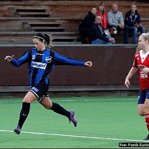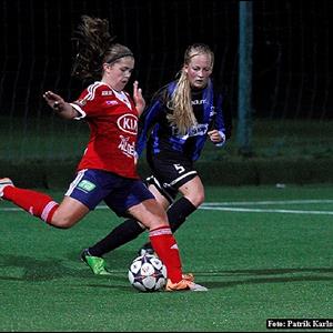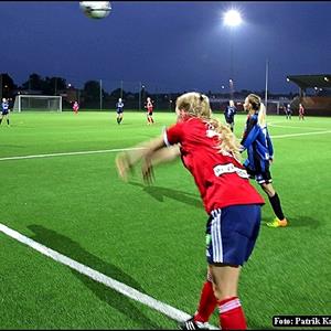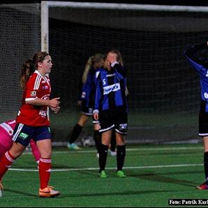 Och som vi startade matchen. Vårt presspel och vårt fina passningsspel var en fröjd att se. Vi pratade innan matchen om att vara rörliga och ta oss bort från närkamper och spela stort. Men Jk10 är ett lurigt lag att möta, de har en enkel taktik men ändå svår att stoppa då deras nr 10 är riktigt vass oavsett om man ligger nära henne eller ej. Kallduschen kom efter ca 10 min när de får en chans och bollen sitter. Vi svarar ganska direkt genom Sophia A snyggt framspelad av Charlotte. Vi fortsätter spela fin fotboll men sen är olyckan framme när Stina i en närkamp som såg oskyldig ut från bänken tar sig för knät och bärs ut på bår. Hoppas verkligen att det inte är något allvarligt. Maja K ersätter och vi fortsätter vårt fina spel halvleken ut. Väldigt fina kombinationer och ett rörligt anfallsspel men där vi gör det lite för svårt i sista tredjedelen. Halvtidspaus.