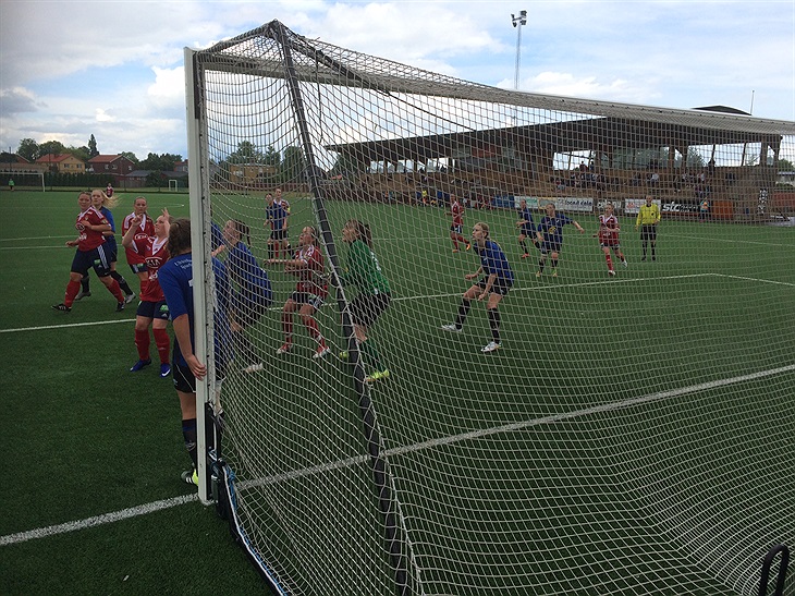 VIF rivstartade och gjorde två mål inom loppet av åtta minuter direkt i inedningen genom Sara Persson och Elin Bååt. Två riktigt fina måll som gav skön utdelning och självförtroende i hemmalaget. Sara 1-0 var resultatet av hennes framstör från högerbackspositionen och Elins 2-0 kom på en inövad hörnvariant.