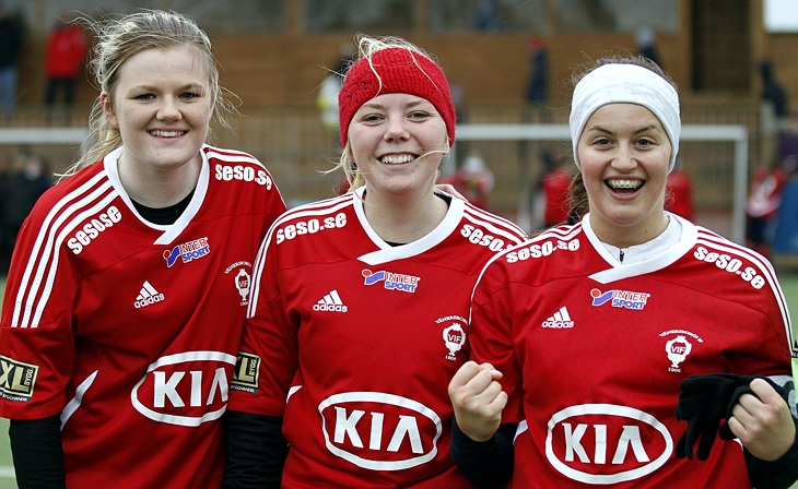 Första lyckliga målskytt var Jill Österholm medan Henån reducerade ganska snart till 1-1 innan Johanna Svensson nickade in en hörna slagen av Julia Falkeborg. Sistnämnda Julia gjorde därefter även 3-1 på ett långskott rätt upp i nättaket.