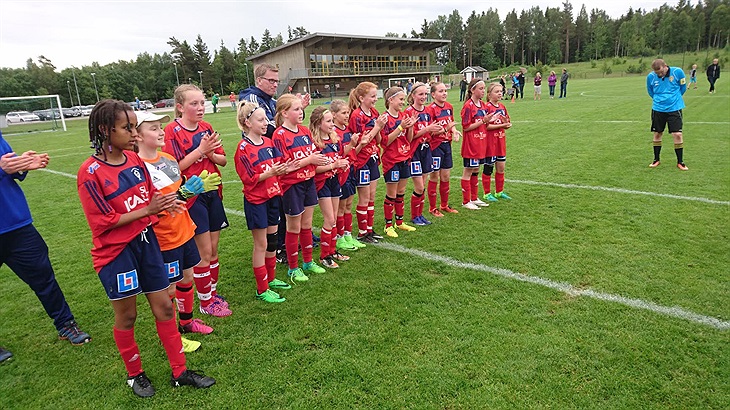 Vi tar ledningen via ett fint distansskott från Dorotea vilket ger oss lite luft under vingarna, mod att hålla i bollen och försöka spela ett varierat anfallsspel. TIF kvitterar men det känns ändå som vi har ett visst grepp om matchen när vi går till pausvila.