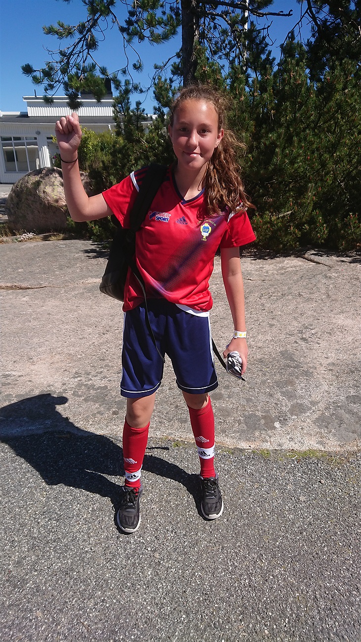 Dagens målskytt Sara nöjd efter karriärens första fullträff.