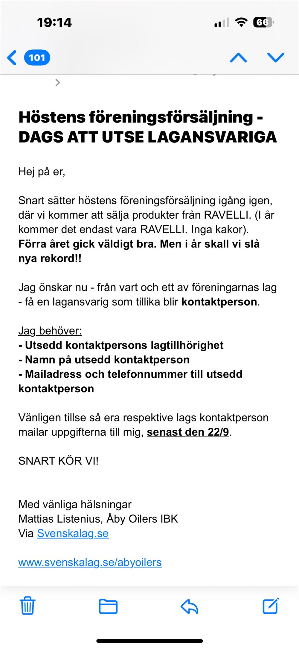 Vi behöver en frivillig spelare eller anhörig som koordinerar vår försäljning! Kontakta gärna mig och Mattias så är det bara att dra igång.