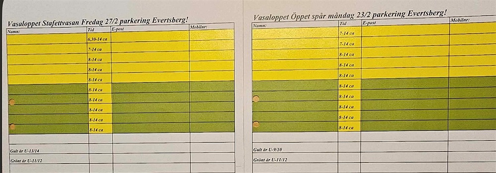 5 pass på stafettvasan fredag 27/2 mellan ca 8-14