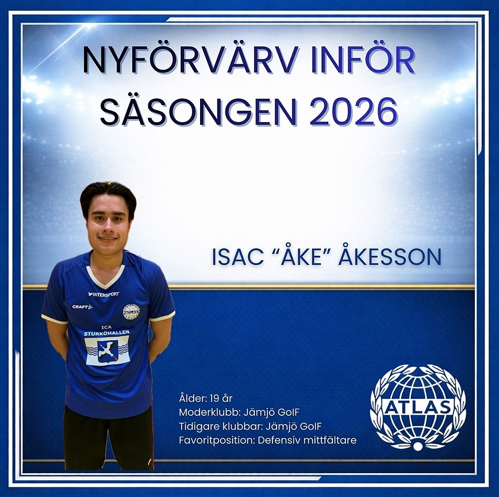 Vi i AIK Atlas är glada att välkomna Isac "Åke" Åkesson till laget inför säsongen 2026. Fantastiskt kul att få med dig i truppen. 💙🤍⚽️