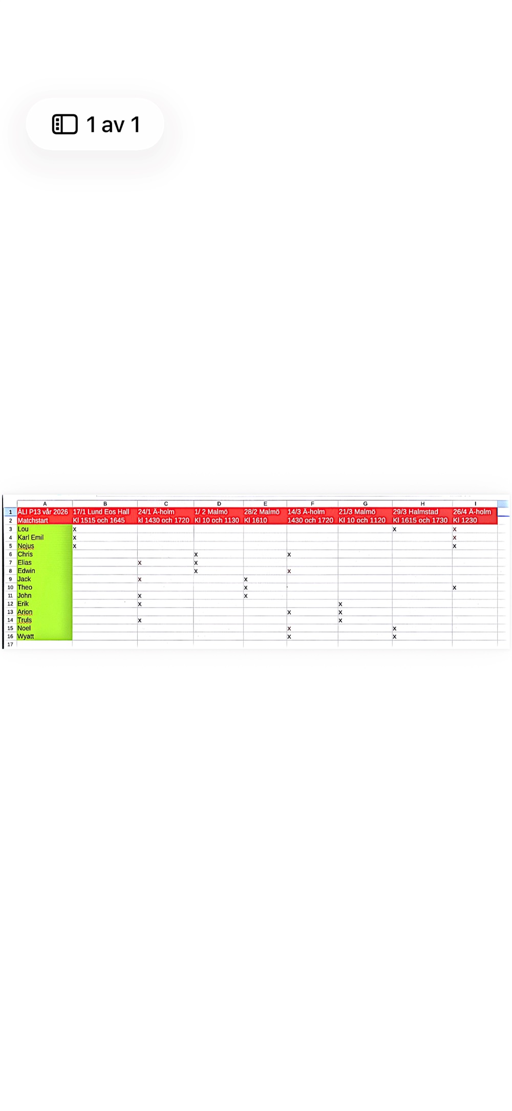 Jag har även fått hjälp med att sätta ihop ett körschema för säsongen. Kolla gärna igenom direkt om ni kan köra/ hjälpa till på den dagen ni blivit uppsatta, om man inte kan får man gärna meddela detta i god tid och i så fall försöka att byta med någon annan.