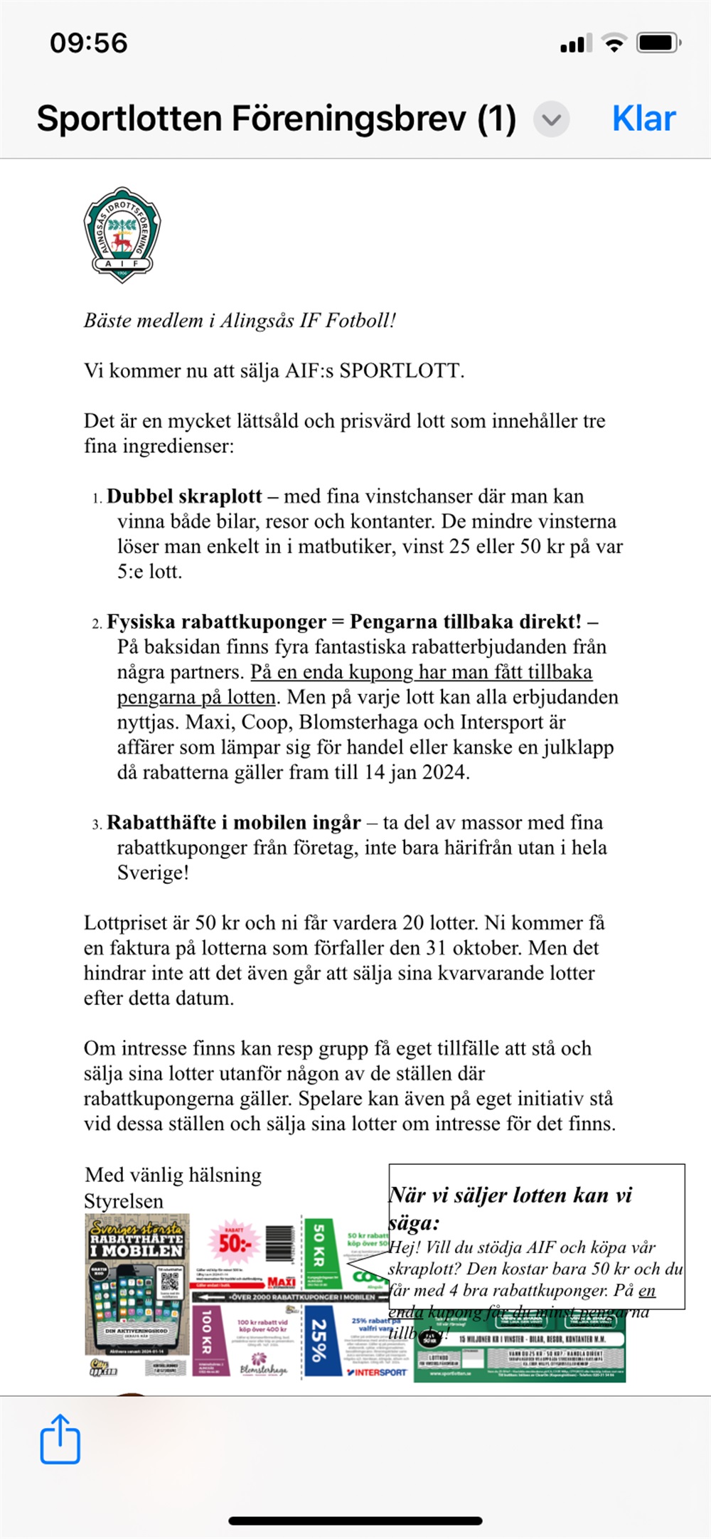 Lycka till med försäljningen och tack för att ni stöttar laget och föreningen!