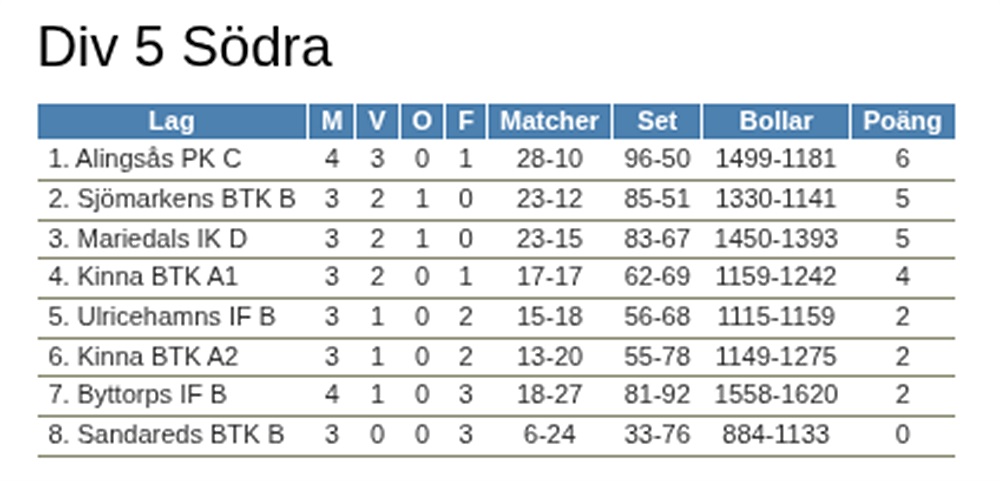 I 3:e omgången förlorade Byttorps IF B mot Kinna BTK A1 med 5 - 8