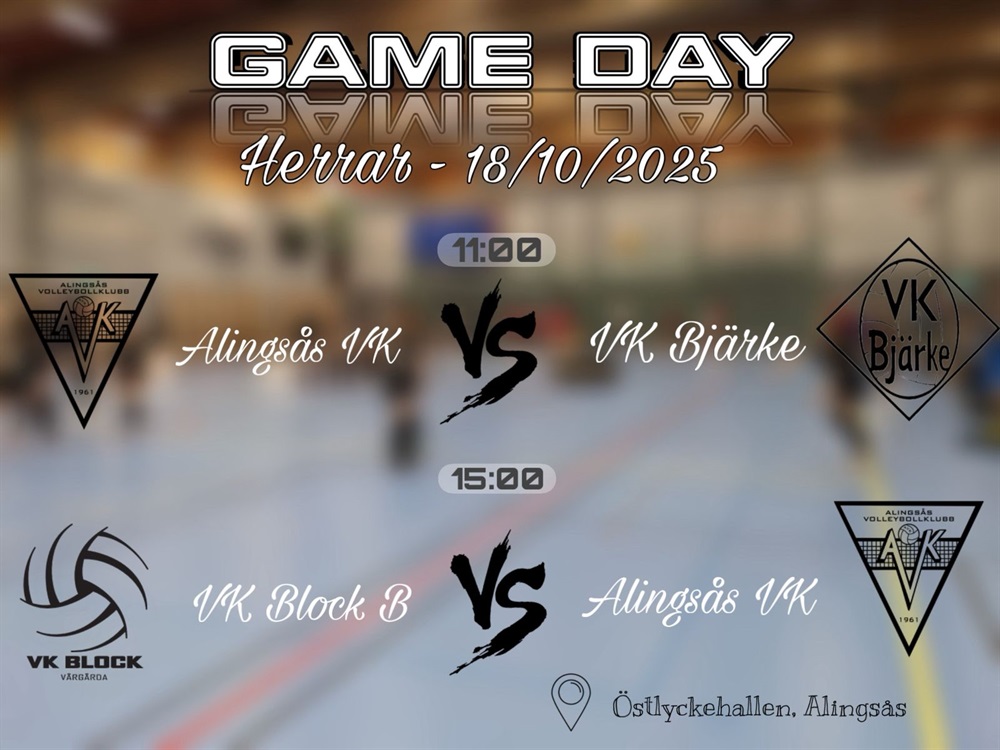 Nu på lördag 18/10 vill vi välkomna till ett trippel-derby i volleyboll för herrar Division 3 i Östlyckehallen. Alingsås VKs herrlag möter VK Bjärke kl 11.00 och därefter möts de båda gästlagen innan Alingsås VK spelar kl. 15.00 mot VK Block B.