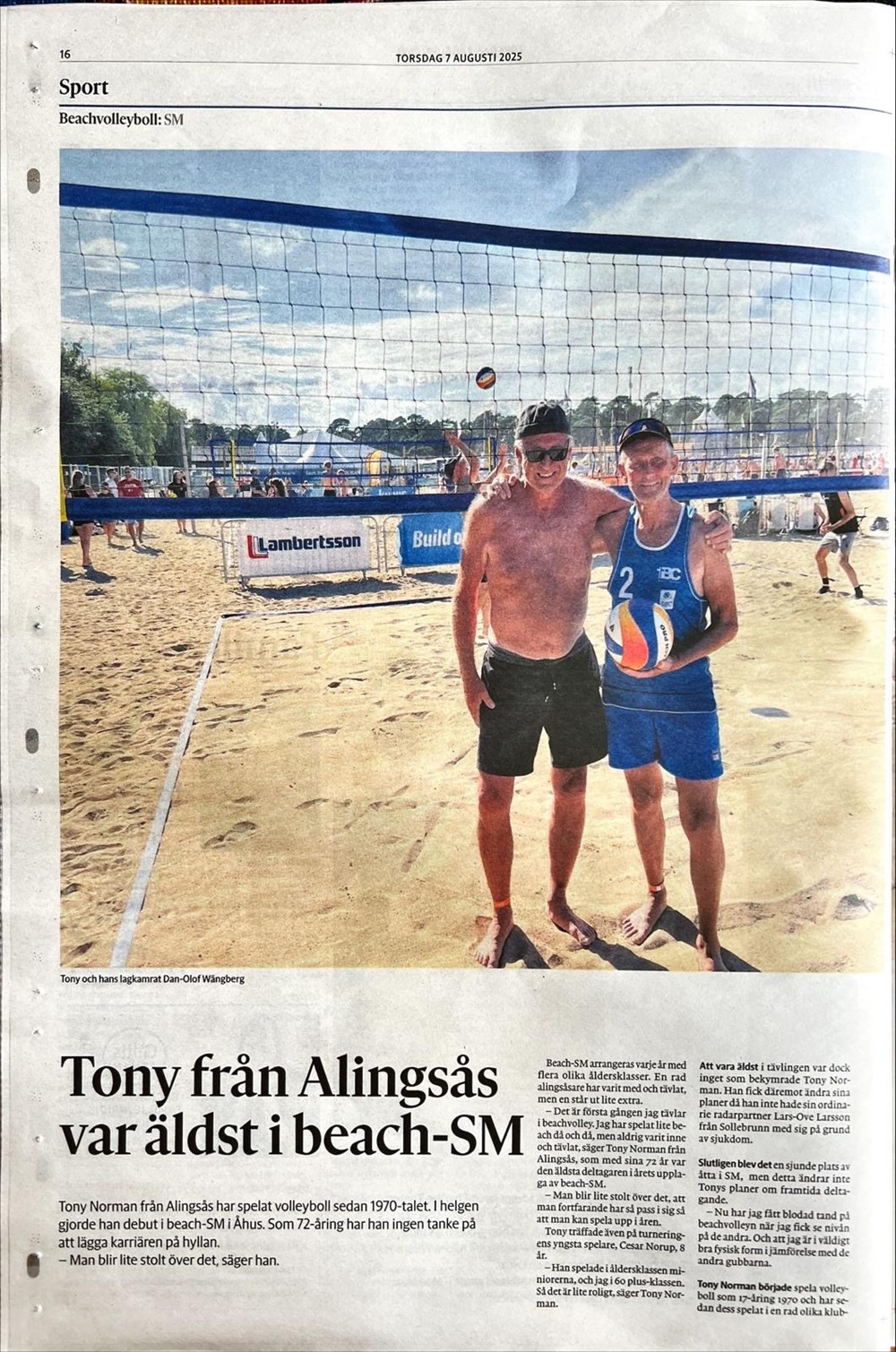 Vår egna Tony Norman, som både aktiv spelare och ledare i klubben fick sin egna artikel i AT efter att ha deltagit i beach SM 2025. Tony representerar även Sverige som del av Veteran landslaget.