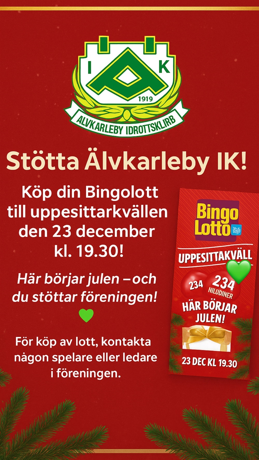 Information försäljning av Bingolotter inför uppesittarkväll 23/12