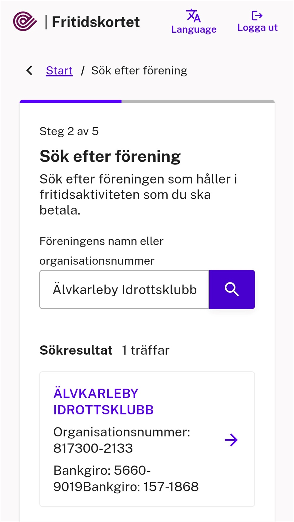 5. Nu har du möjlighet att betala för aktiviteten med Fritidskortet.