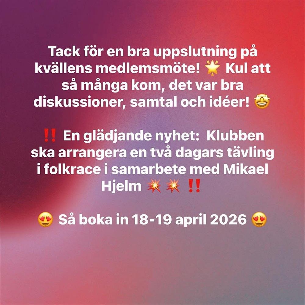 Vilken fantastisk dag vi haft på Årjängstravet fina anläggning med 100 startande ekipage. Vi är så tacksamma för samarbetet med Årjängstravet.🙂 Tackar alla samarbetspartner, tävlande, publik ock inte minst alla funktionärer som ställer upp och gör allt jobb före,under och efter tävling så allt blir återställt som innan vi började🙏🏻Golfkrogen serverade god mat till tävlande och funktionärer så vi höll oss mätta under dagen😋Stort TACK till alla!