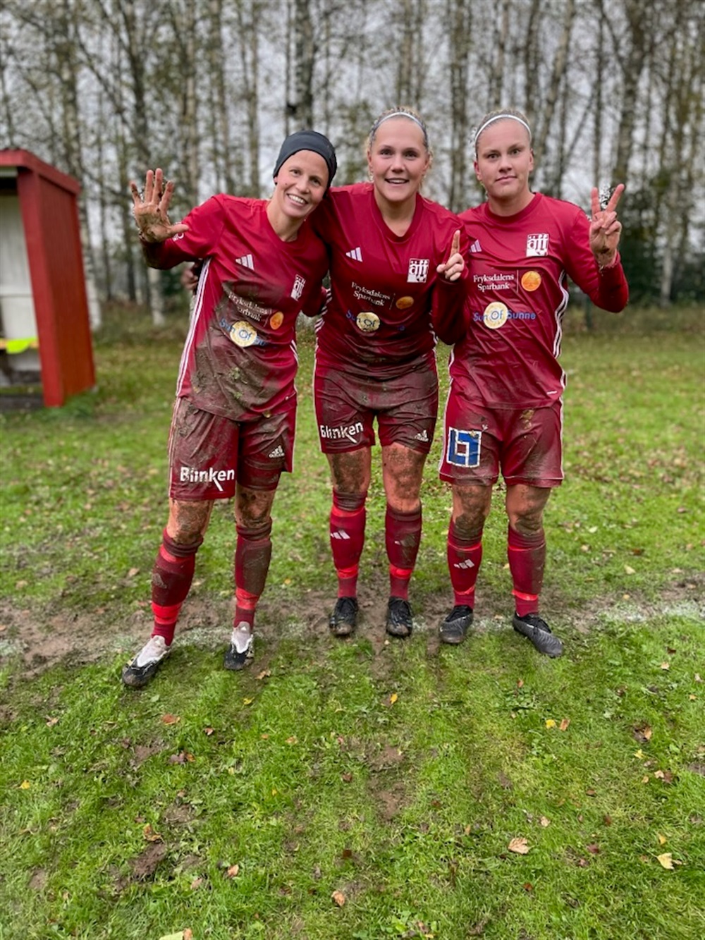 På lördag 4/10 spelar vi vår sista match för iår och oavsett hur den går kan vi summera vår comeback i div 3 som fantastisk! När vi startade upp vårt lag igen inför förra säsongen så var vårt främsta mål att få ihop en grupp på och utanför planen som hade roligt tillsammans och att det i sin tur skulle bli vår grund när vi samtidigt försökte utveckla vårt spel där alla spelare hade olika erfarenheter. I övrigt var inte vår målsättning mer uttalad än så och har egentligen inte varit det nu heller, men det är klart; ett lag som så småningom kan bli ett stabilt lag i div 3, det kanske nämndes någon gång :) Att få vara med att leda en grupp tjejer, i alla åldrar, med olika rutin osv är ibland en utmaning då man vill ge alla ett meningsfullt utbyte MEN en gemensam nämnare för var och en är deras attityd och inställning: vi ger oss inte! I många matcher, speciellt vårsäsongen då vi drogs med en del sjukdom och skador i laget, då visade tjejerna vad klyschan ”laget före jaget” innebär! Vi hade höstens målspruta Sofie som målvakt vid ett par tillfällen, Suss som har spelat i 2 år med ett friskt ben, men vägrar missa match, Annika som kom som ett skott när vi ringde i sista sekund och behövde förstärkning.. ja, de är otroliga! Vårsäsongen gick trots allt väldigt bra, förutom ett par matcher där vi inte presterade som vi ville mot tufft motstånd som tex i derbyt mot Emtarna. I sommaruppehållet fick vi in 3 spelare i Ninni, Martina och Linnea som gav laget ytterligare ett lyft, ännu mer energi & tränarna ett lyxproblem i att uttagningarna blev tuffare. Det har väckts en anda under hösten som ibland känts ostoppbar! Vi har varit hela och tillgängliga till fler matcher, de nya spelarna har bidragit massor, vi har lyckats få ihop ett glödhett radarpar längst fram i Sofie och Sofia, ett hårt arbetande mittfält med Bianca och Kolm som vår centrala motor, rutinerad backlinje som spelar med ett lugn och vår ”nolla” längst bak: Vonka som växt mer för varje match. Oavsett vilka spelare som startat så har man haft bästa laget på planen! Alla har bidragit till en strålande höstsäsong med hittills bara segrar och ett sammantaget fantastiskt år!