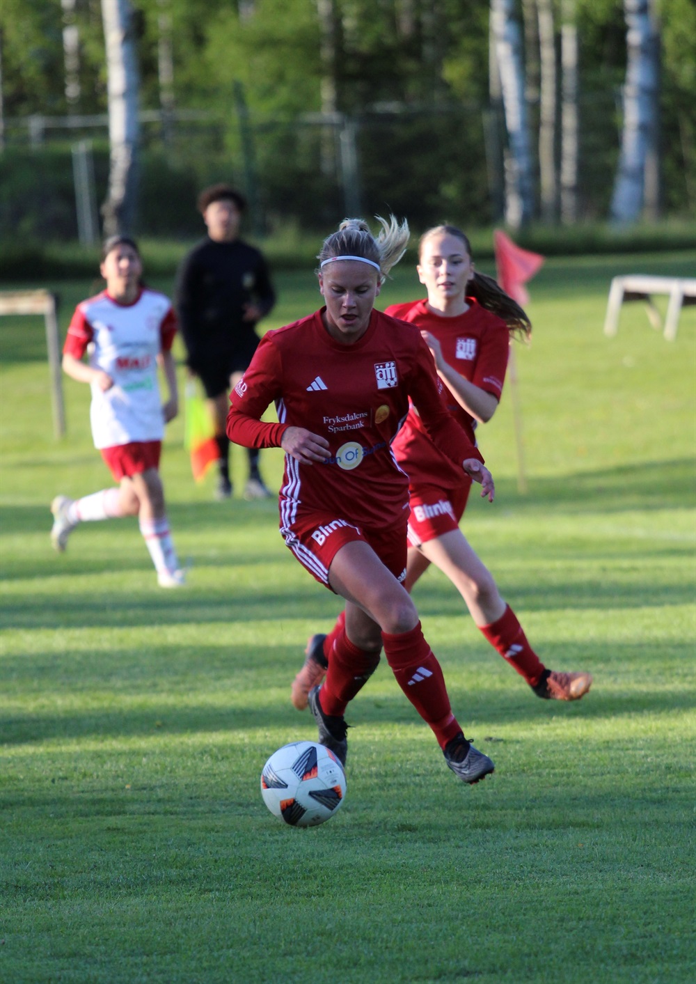 I andra halvlek ökar båda lagen takten och börjar närma sig fler farligheter. Det dröjer ända fram till '77 innan första målet ska komma. Emtarna får då en straff, som från sidan ser billig ut. De förvaltar den väl och tar ledningen med 1-0. Vi flyttar fram spelare efter det för att skapa tryck vilket ger resultat när Sofia bryter sig loss ett par minuter senare och sätter kvitteringen. Glädjen blir dock inte långvarig när Emtarnas duktiga nr 10 får på en drömträff långt utifrån som seglar in och Emtarna återtar ledningen med 2-1. Vi försöker komma till fler lägen men kommer tyvärr inte närmare än ett ribbskott och ett bortdömt offsidemål (återigen tveksamt).