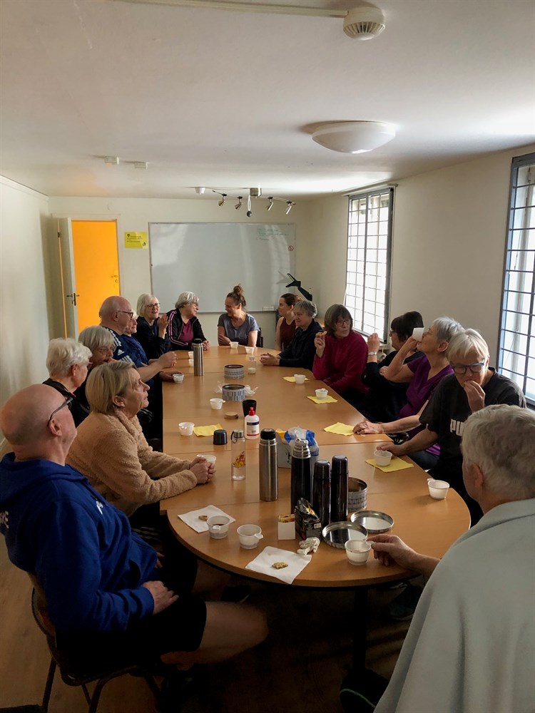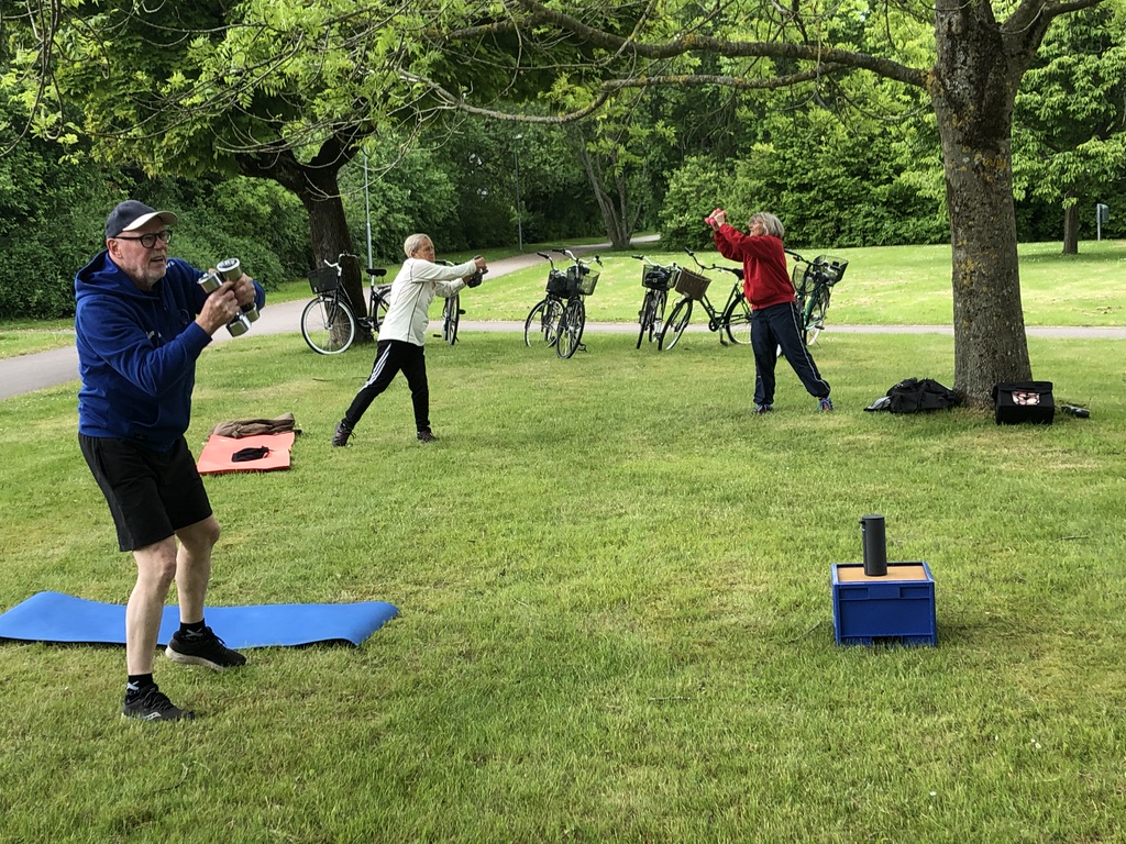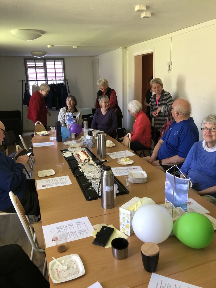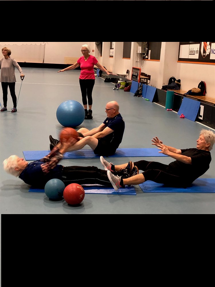 ÄGF 105 år med ballong gympa och 105 cm tårta