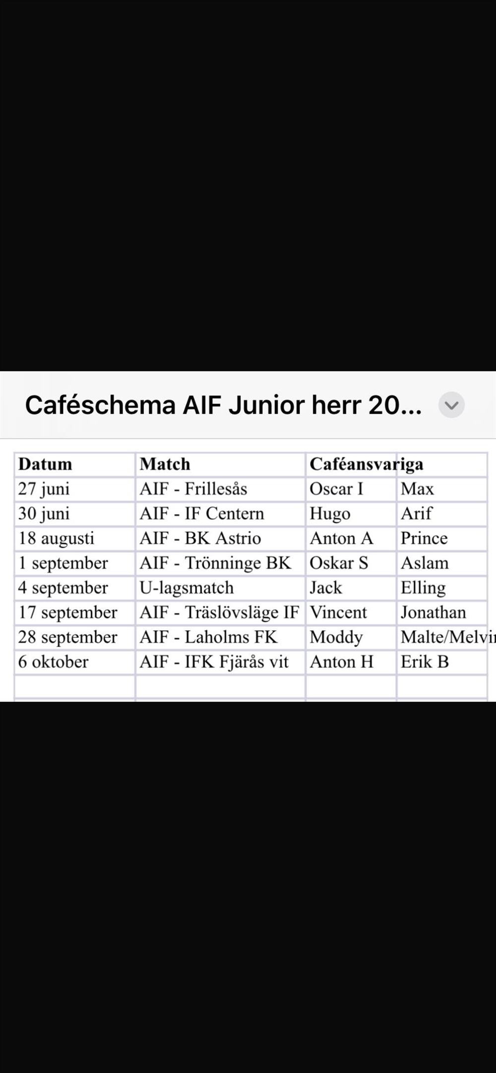 Här kommer caféschemat. Om man inte kan sitt tilldelade pass byter man med någon annan.