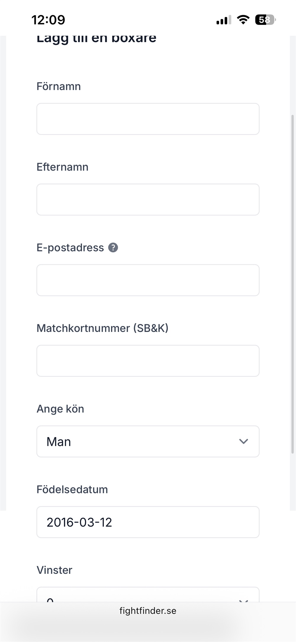 Några utav er har redan skaffat tävlingskort, DUNDER! Ni som väntar på godkännande behöver sedan skicka information till oss, mig eller Carl, så vi kan lägga in er i Fight Finder där vi anmäler oss till matcher. Jag har bifogat en bild med informationen vi behöver. Skicka även eran vikt, vilket är viktigt då tävlingar arrangeras beroende på vikt.