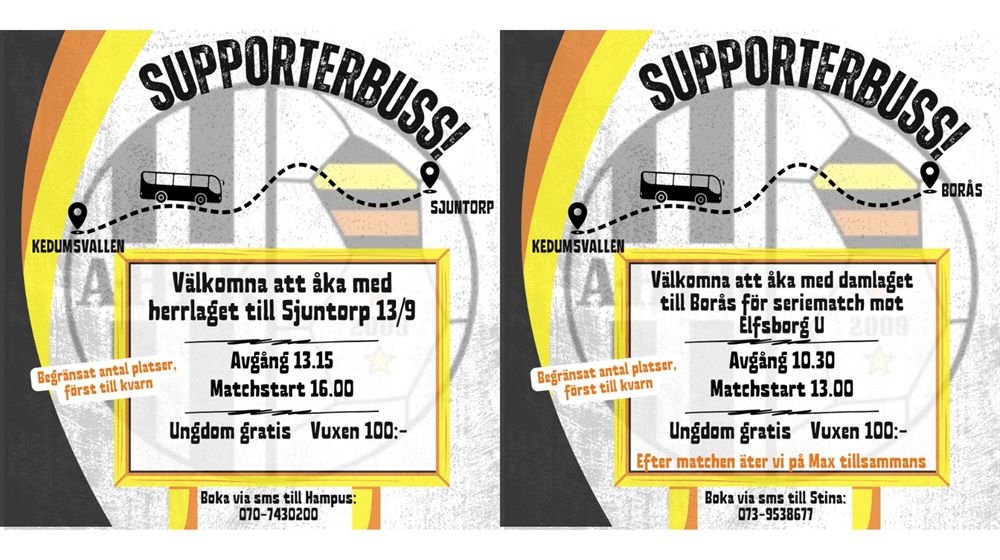 Ny tid för avresa med buss till herrarnas match imorgon, bussen kommer gå 13.45 från Kedumsvallen