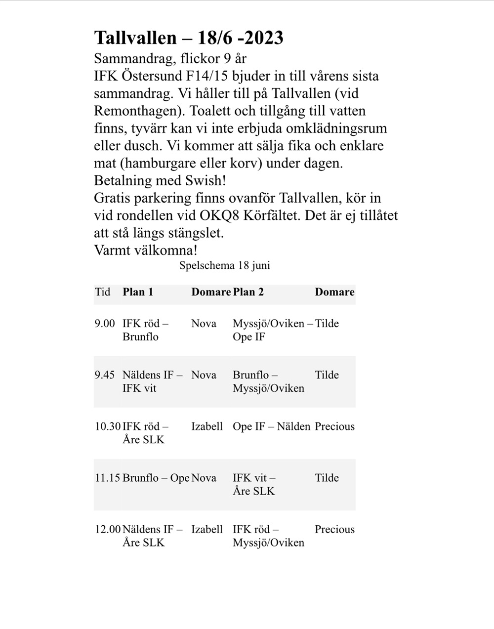 Är väl bra om vi ses minst 20 min innan så vi hinner lite genomgång.