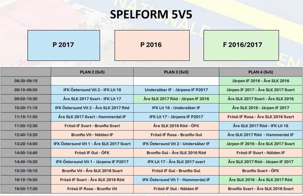OBS 1: Det har blivit ändringar i spelschemat för Nationaldagscupen. Båda lagen spelar sina första matcher samma tid som angetts tidigare, och samlingstiderna är oförändrade, men sedan har det blivit några ändringar. Hela spelschemat finns här.