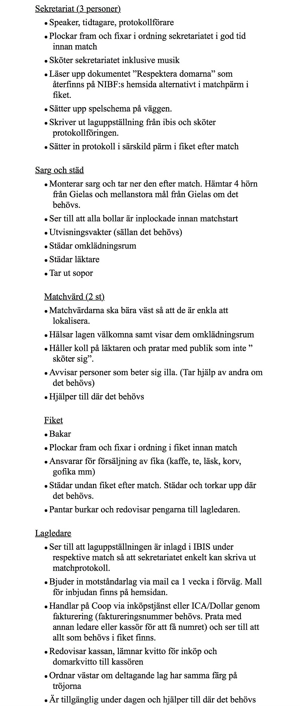 Om någon arbetsuppgift inte funkar av någon anledning är det ens egna ansvar att antingen byta med någon i laget eller hitta en ersättare. Vi kommer alla behöva hjälpas åt denna dag.