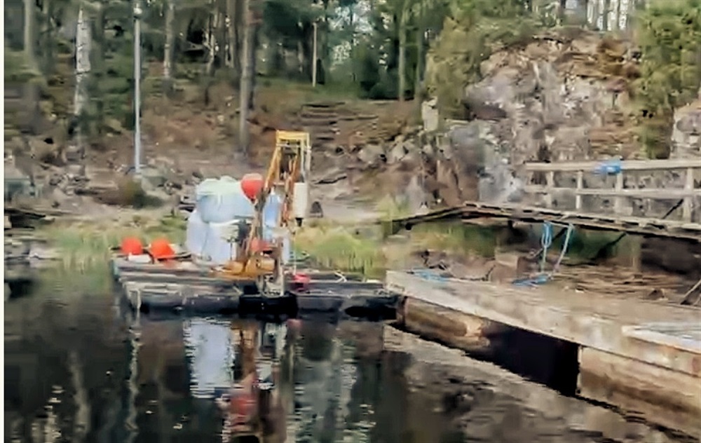 Nu är pontonkranen på väg från skagern mot hamnen.