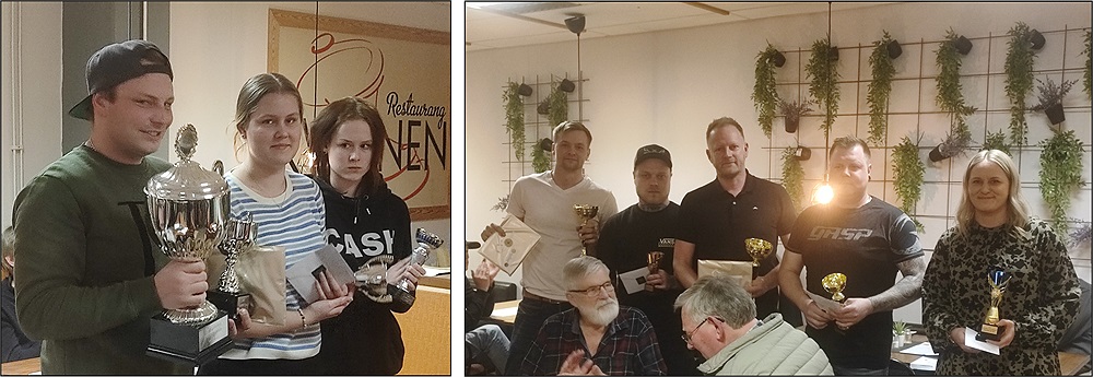 Därefter följde prisutdelning för klubbmästerskapen i folkrace och rally. På bilderna ovan ses klubbmästaren i folkrace Eddie Eriksson följd av tvåan My Henriksson samt bästa junior Molly Henriksson. Trean bland seniorerna,Ted Holtne, saknades.
