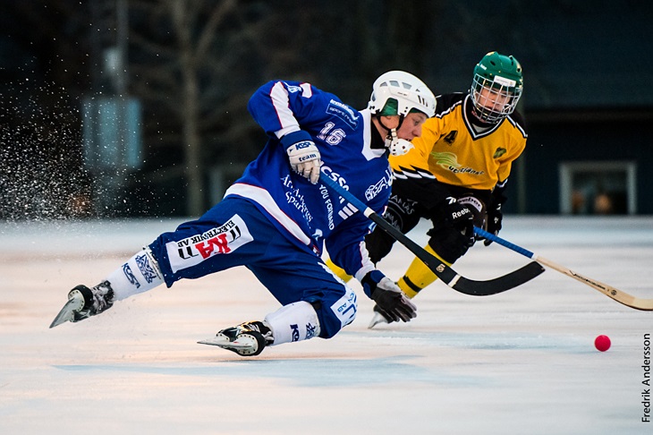 Om någon var på bandy för första gången så är det tveksamt att de kommer tillbaka. En otroligt svår spelad plan och ett bortalag i säckförsvar. Vi får hoppas att de kommer tillbaka när det är bättre förutsättningar för bandy. Det känns som vädret blir bättre redan till nyårsafton när vi möter Motala hemma kl 14. Matchen kunde kanske ha slutat annorlunda om vi hade gjort 1-0 efter ca fem på ett lyft från Erik Skoogh som plockas ner av Oskar Karlsson som skjuter men deras målvakt räddar. Vi försöker spela med många involverade men det är svårt att komma igenom deras låga försvar Det är bortalaget Frillesås om tar ledning genom ett frislag från kanten som styrds in av Daniel Gunnarsson. De gör även nästa mål pga att vi tyvärr ger bort bollen i fel läge och Mattias Olausson sätter bollen säkert bakom Joakim Nygren. Efter 21 minuter så får vi en straff som Albin Wretman skjuter säkert i mål bakom Frillesås målvakt, Christian Axelsson som jag tyckte var deras bäste spelare. Han gör en riktigt bra reflexräddning som skulle ha givit oss 2-2 i slutat av första halvlek.