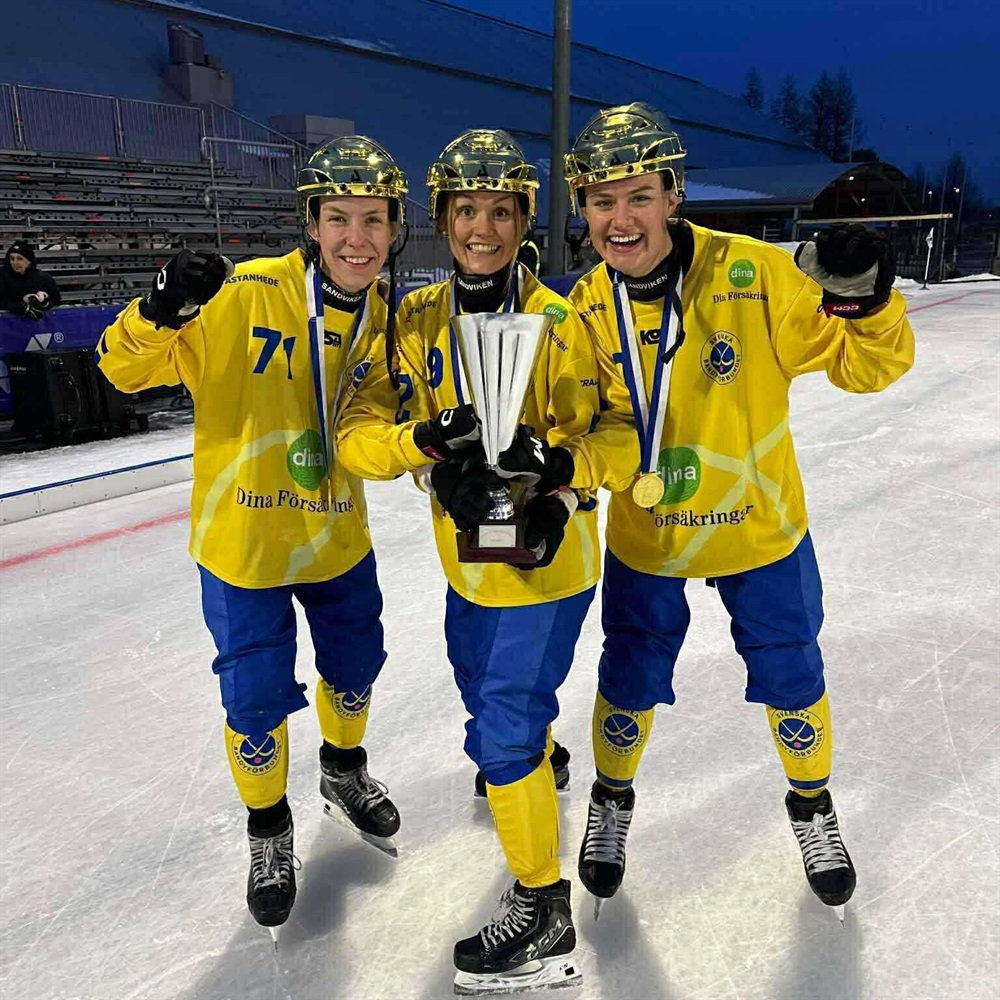 VM-GULD Under förra veckan började världsmästerskapen i bandy, som detta år avgjordes i Finland, Björneborg. Damlandslaget gick obesegrade genom turneringen och vann finalen med hela 9-1 mot Norge! Med i laget var Åtvidabergs stora talang Emelie Åkerlund som nu kan titulera sig som världsmästare för fjärde gången. Herrlandslaget vann också sin final, även dom med hela 9-1 fast mot Finland! Åtvidabergs Bandyklubb vill rikta ett STORT GRATTIS till Sverige & framförallt Emelie